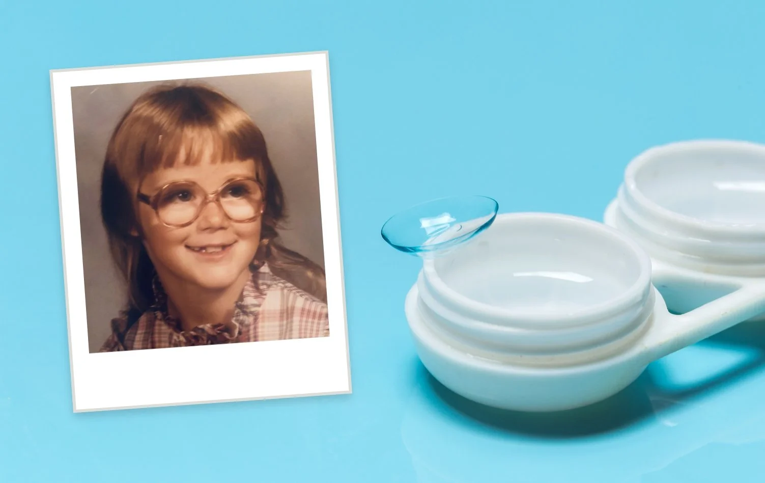 Turns out I have something called “lens adherence syndrome”. After 33 years of wearing rigid gas permeable (aka hard) contact lens, my left eye has rebelled like a toddler at bedtime. At first, I was terrified. I imagined reverting back to wearing my Coke-bottle glasses, because this is what I looked like when I did: